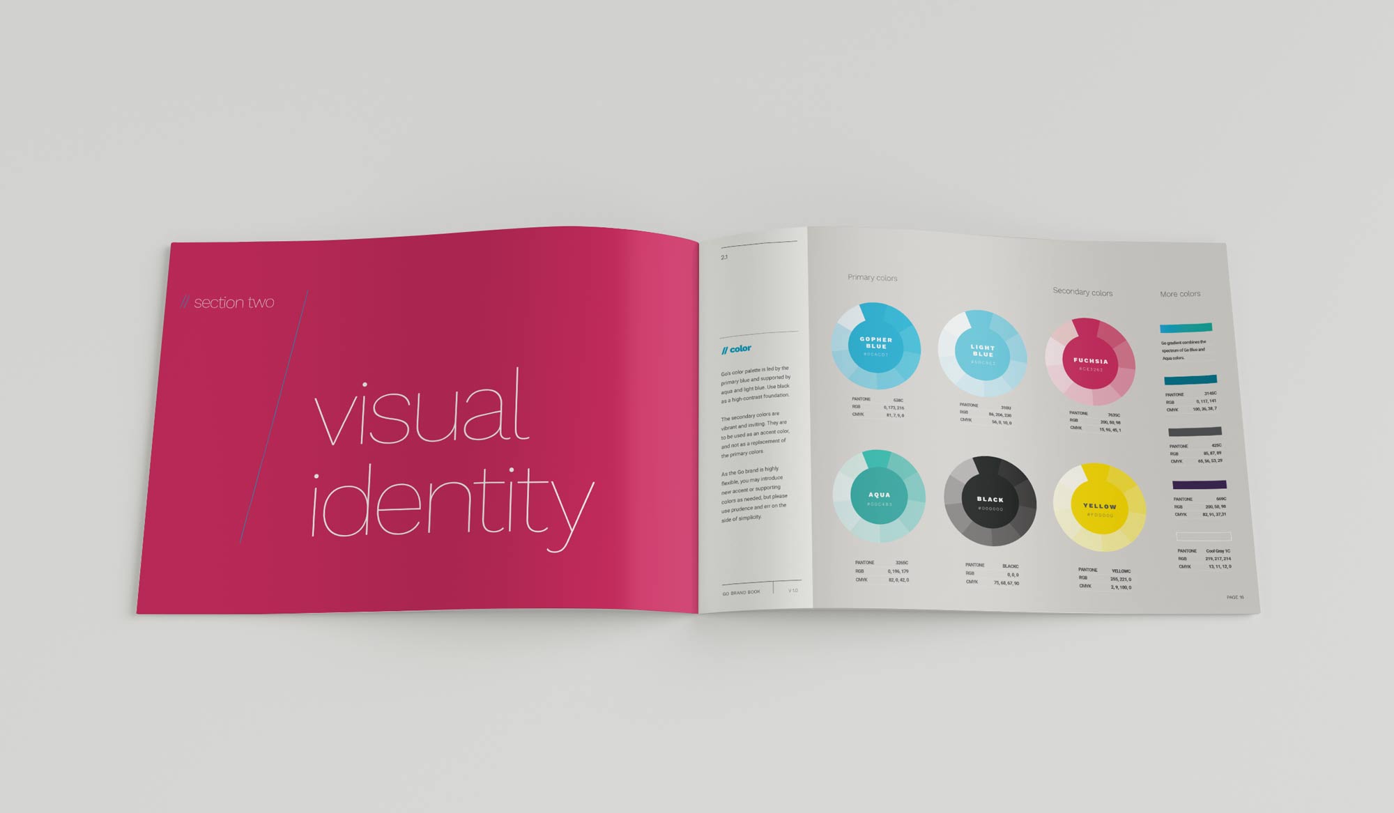 The brand guide establishes the mission, values and voice for the Go project. In general terms, a brand guide is a reference tool for establishing a consistent brand identity. It is sometimes referred to as “brand guidelines” or a “brand book”. It is a single document that serves as a guide and reference to designers, writers, and developers to create consistent, on-brand content.