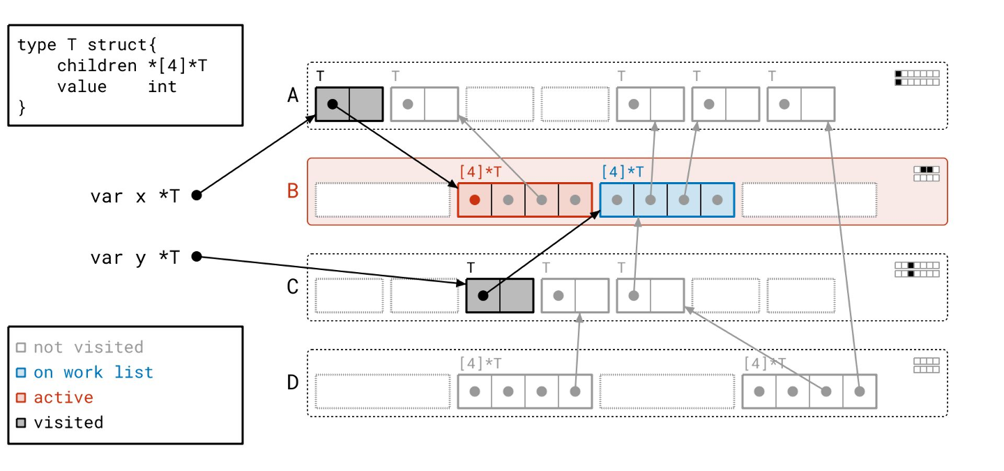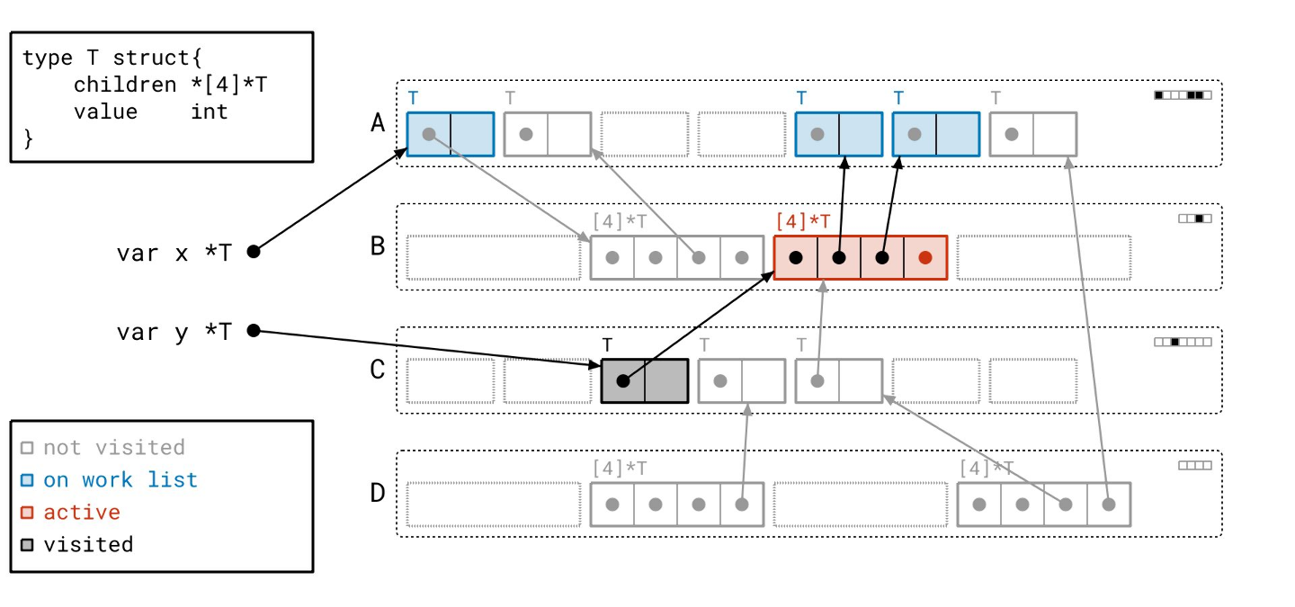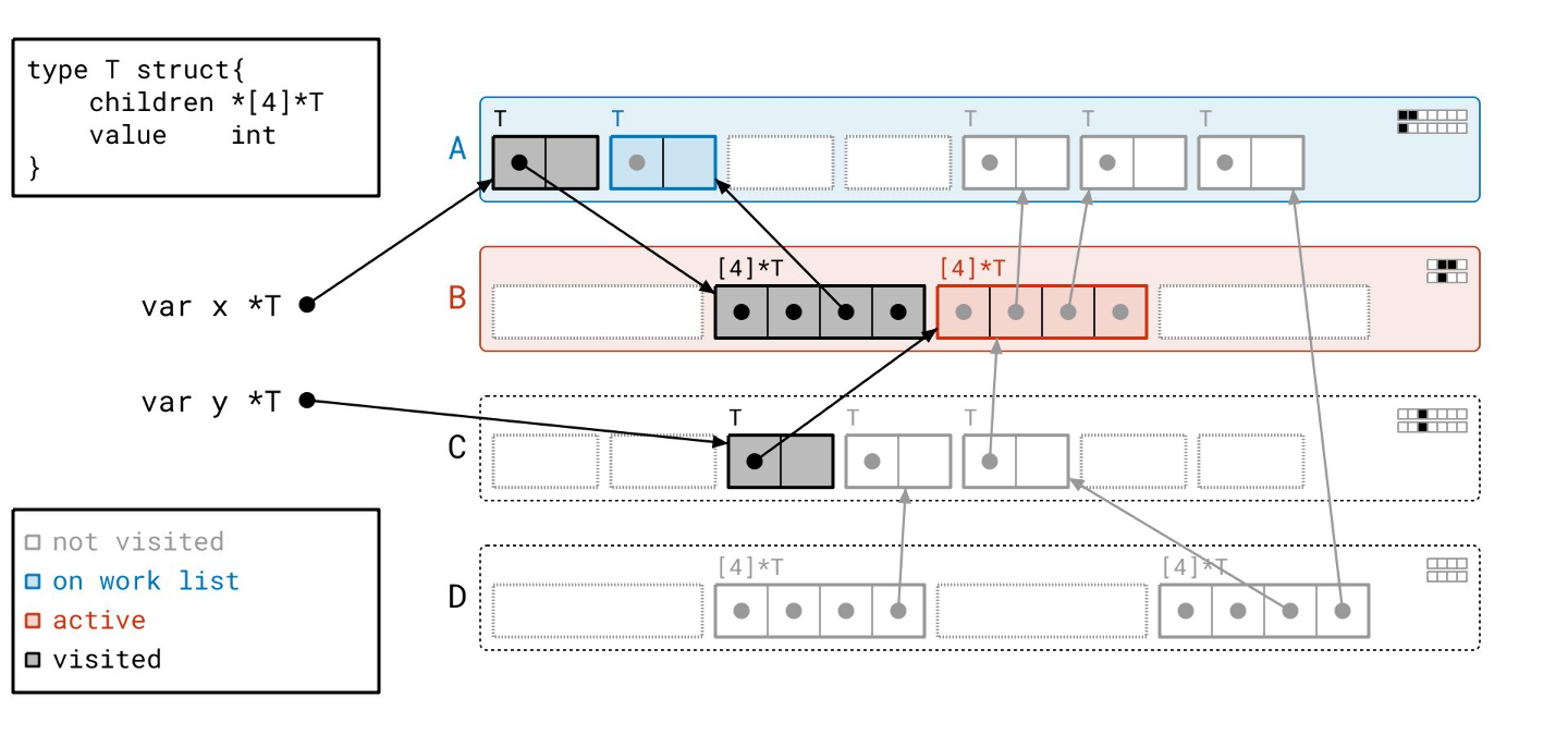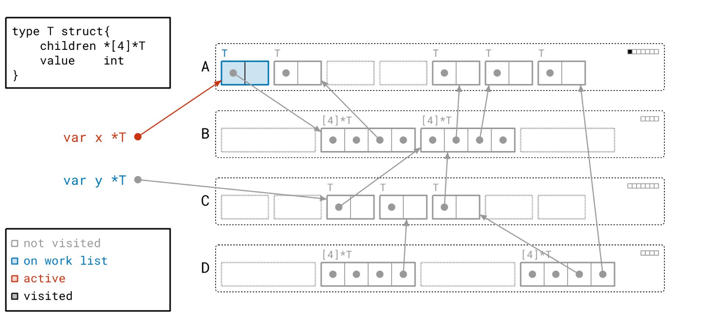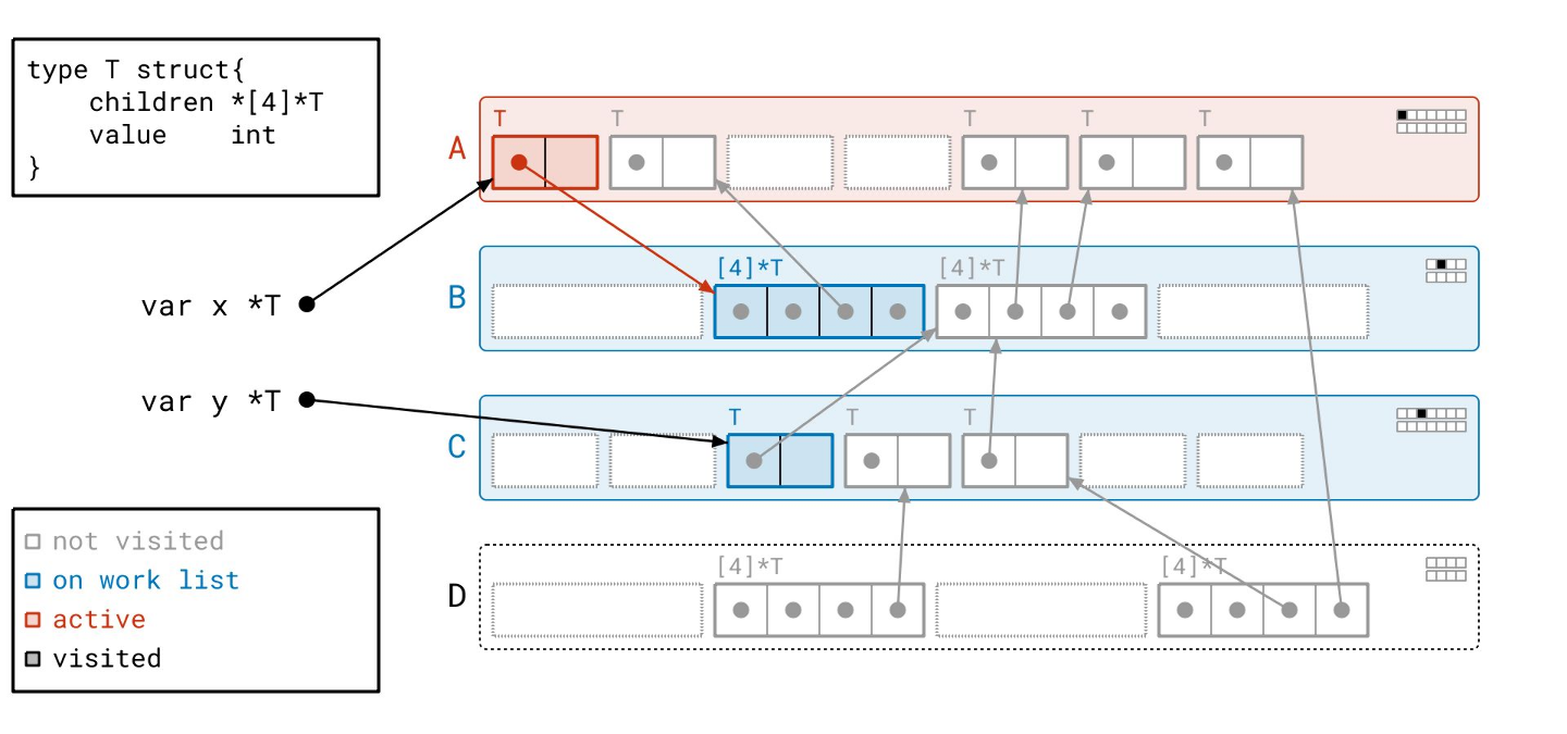 For example, this algorithm is, in practice, executed concurrently with your regular Go code. Walking a graph that’s mutating underneath you brings challenges. We also parallelize this algorithm, which is a detail that’ll come up again later.