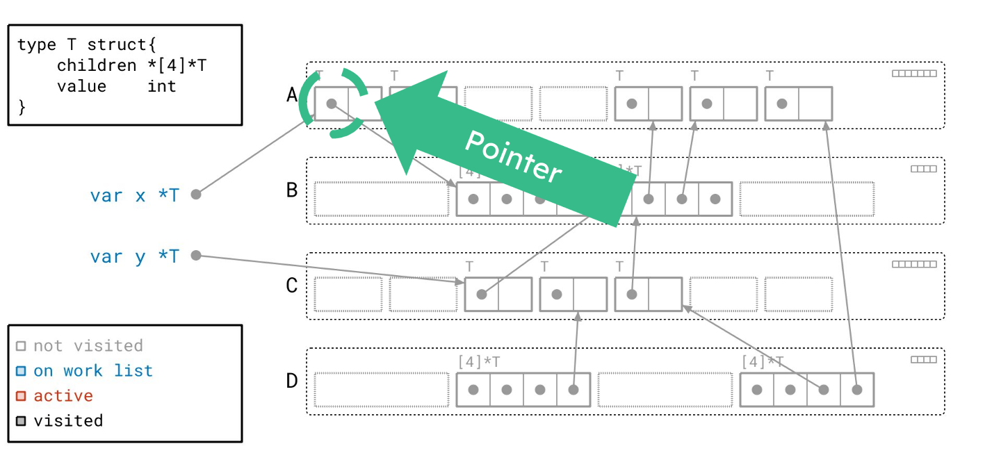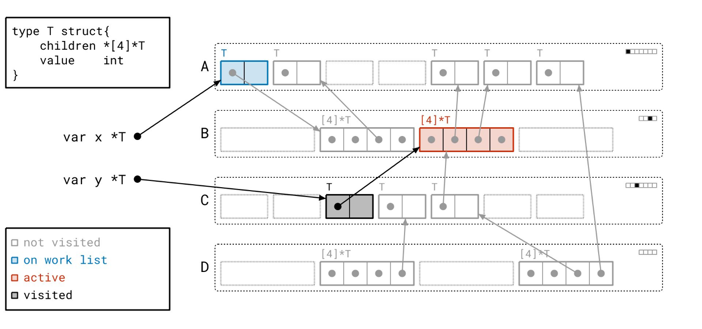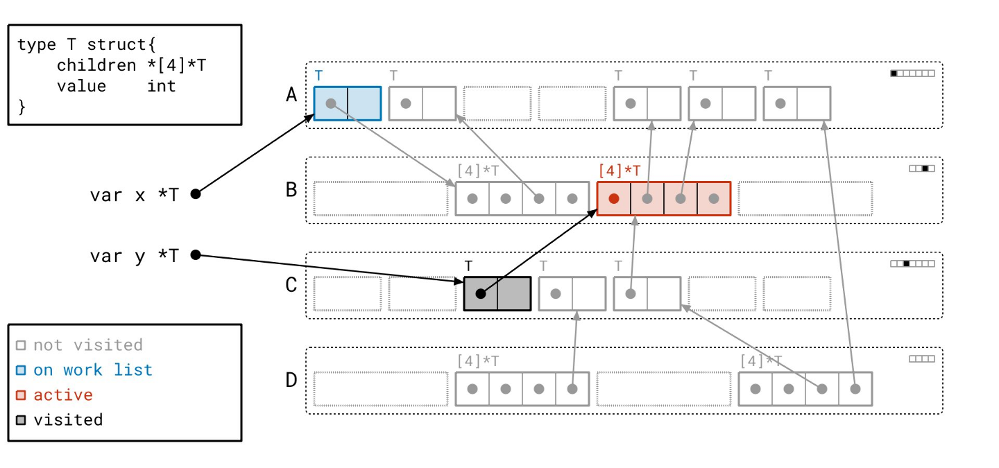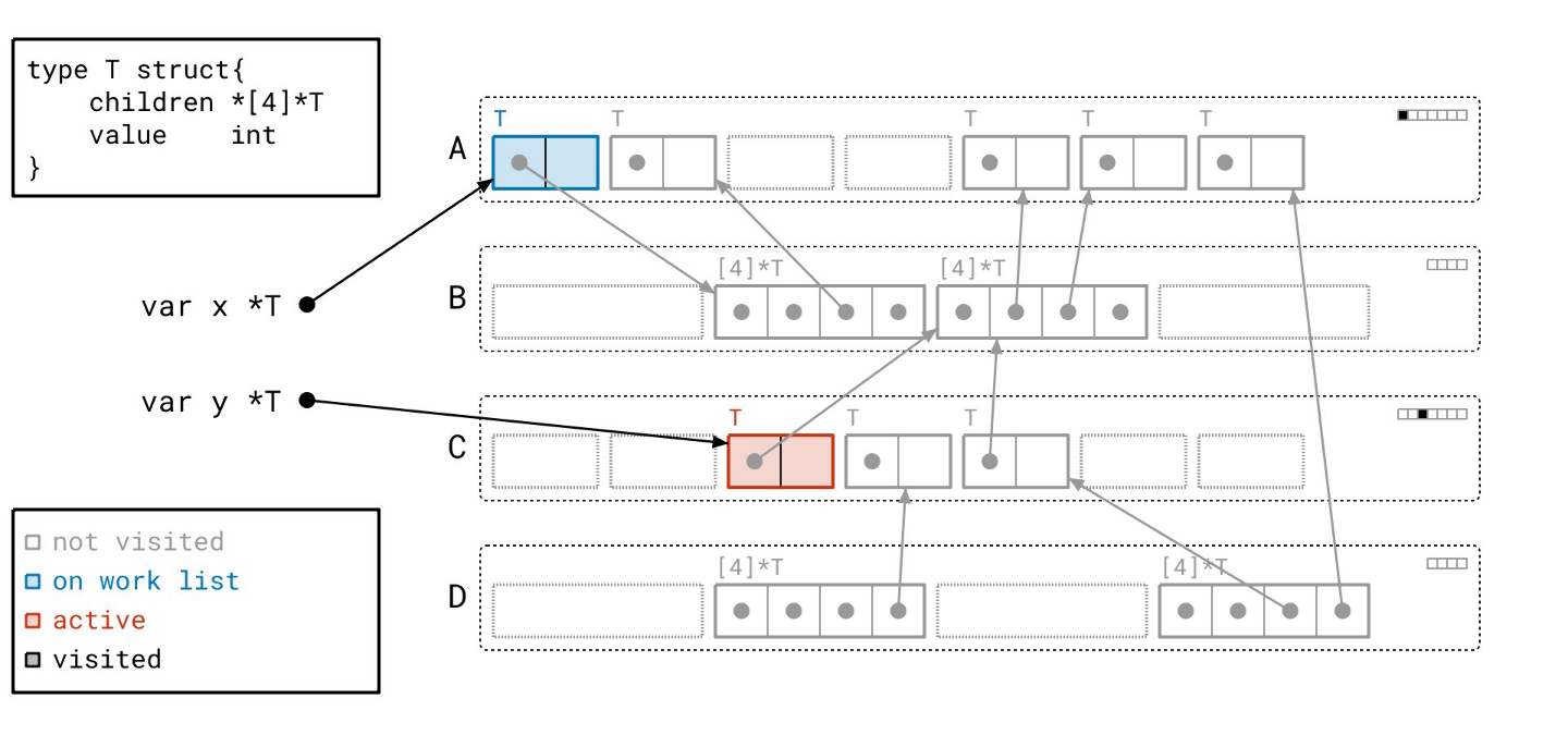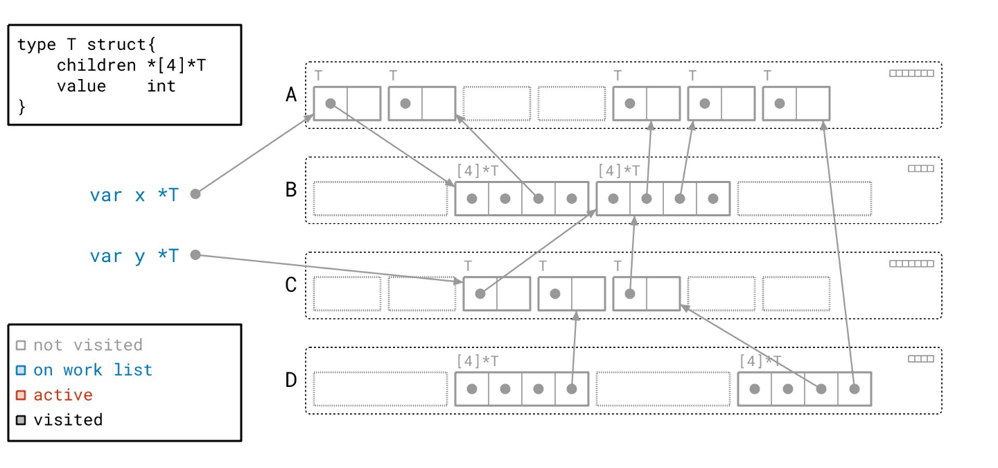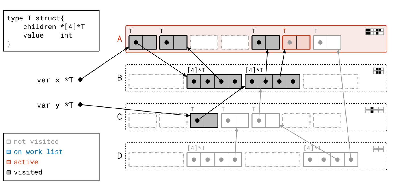 For example, this algorithm is, in practice, executed concurrently with your regular Go code. Walking a graph that’s mutating underneath you brings challenges. We also parallelize this algorithm, which is a detail that’ll come up again later.