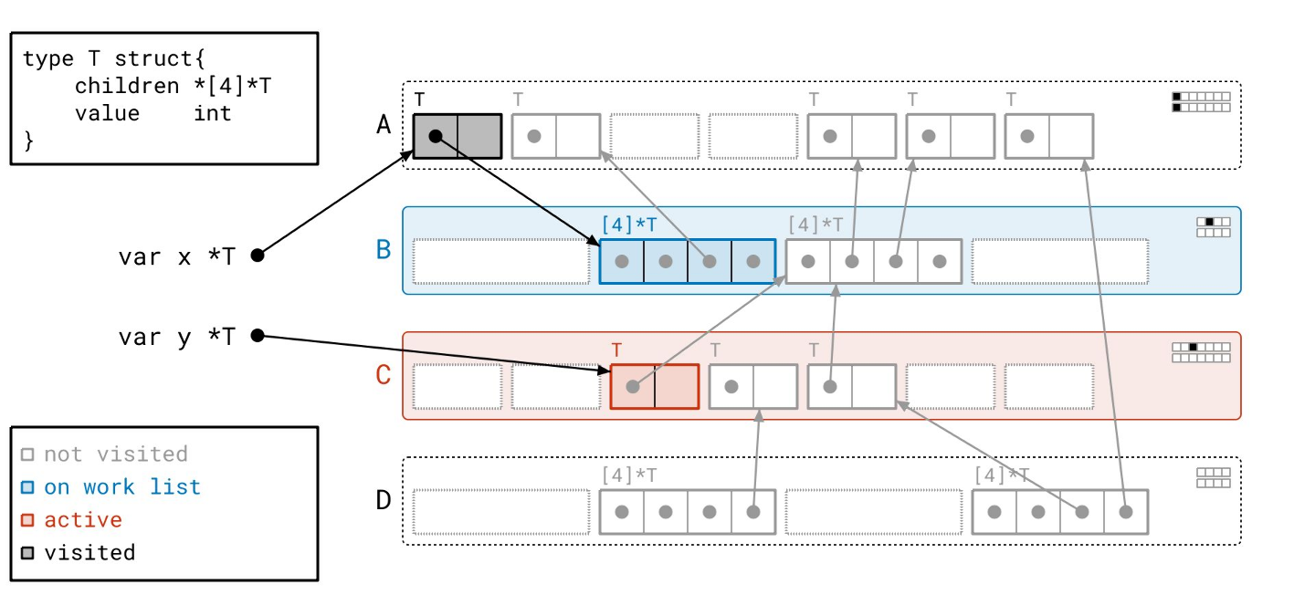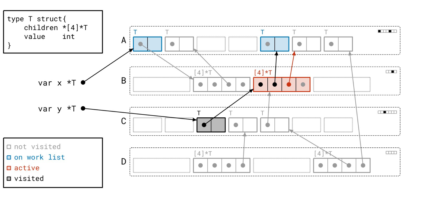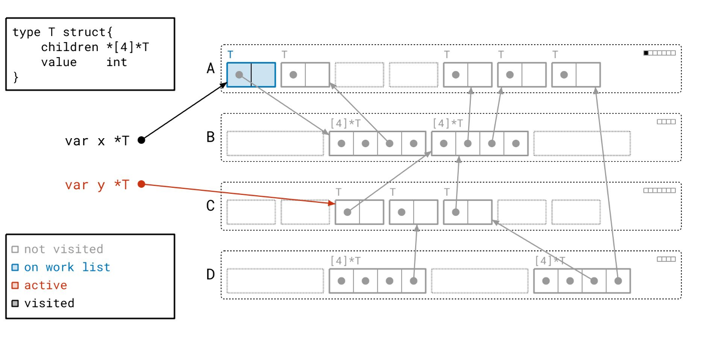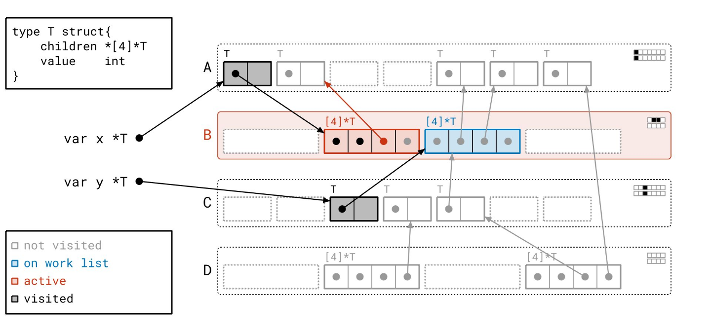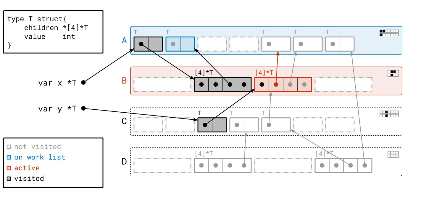 For example, this algorithm is, in practice, executed concurrently with your regular Go code. Walking a graph that’s mutating underneath you brings challenges. We also parallelize this algorithm, which is a detail that’ll come up again later.