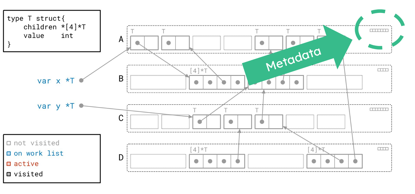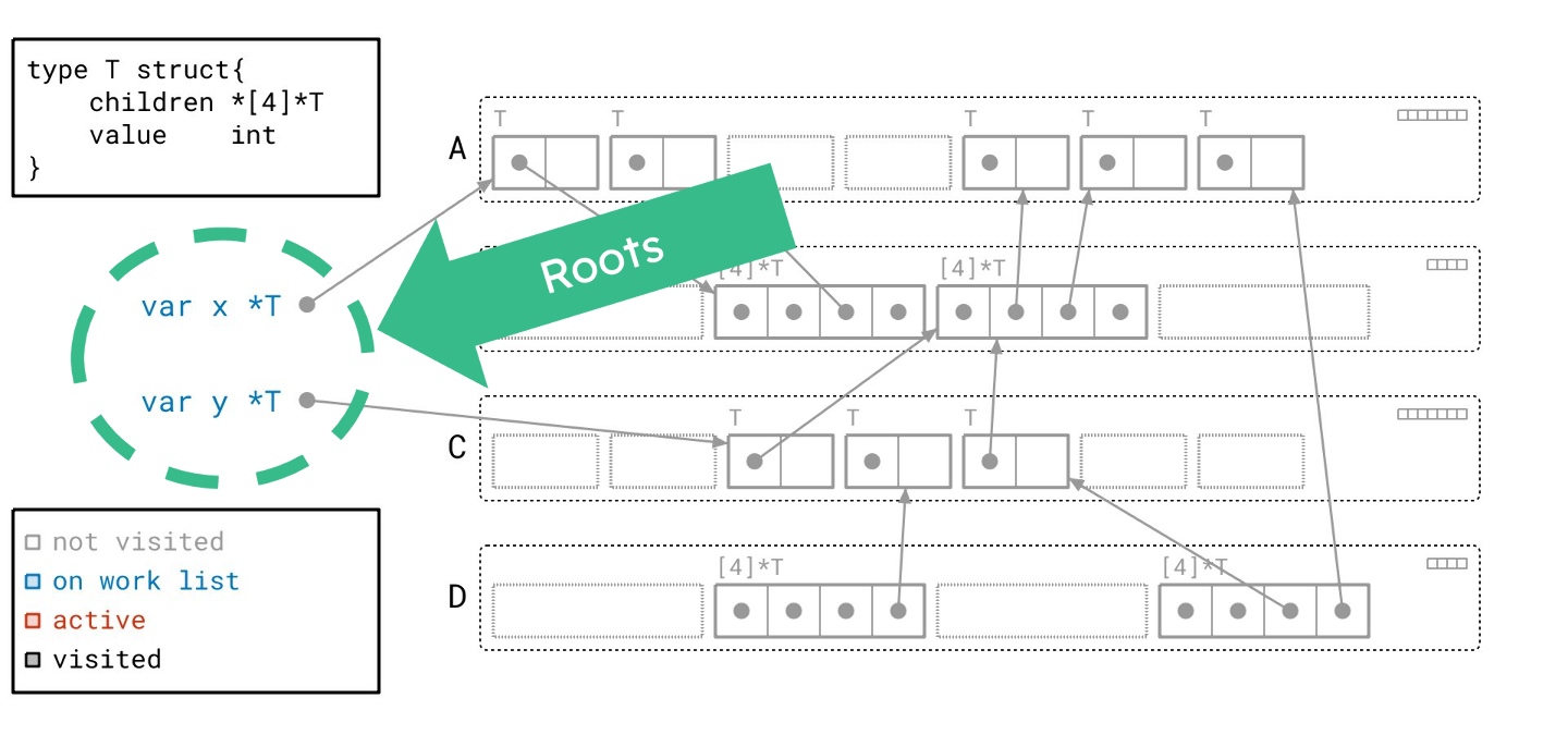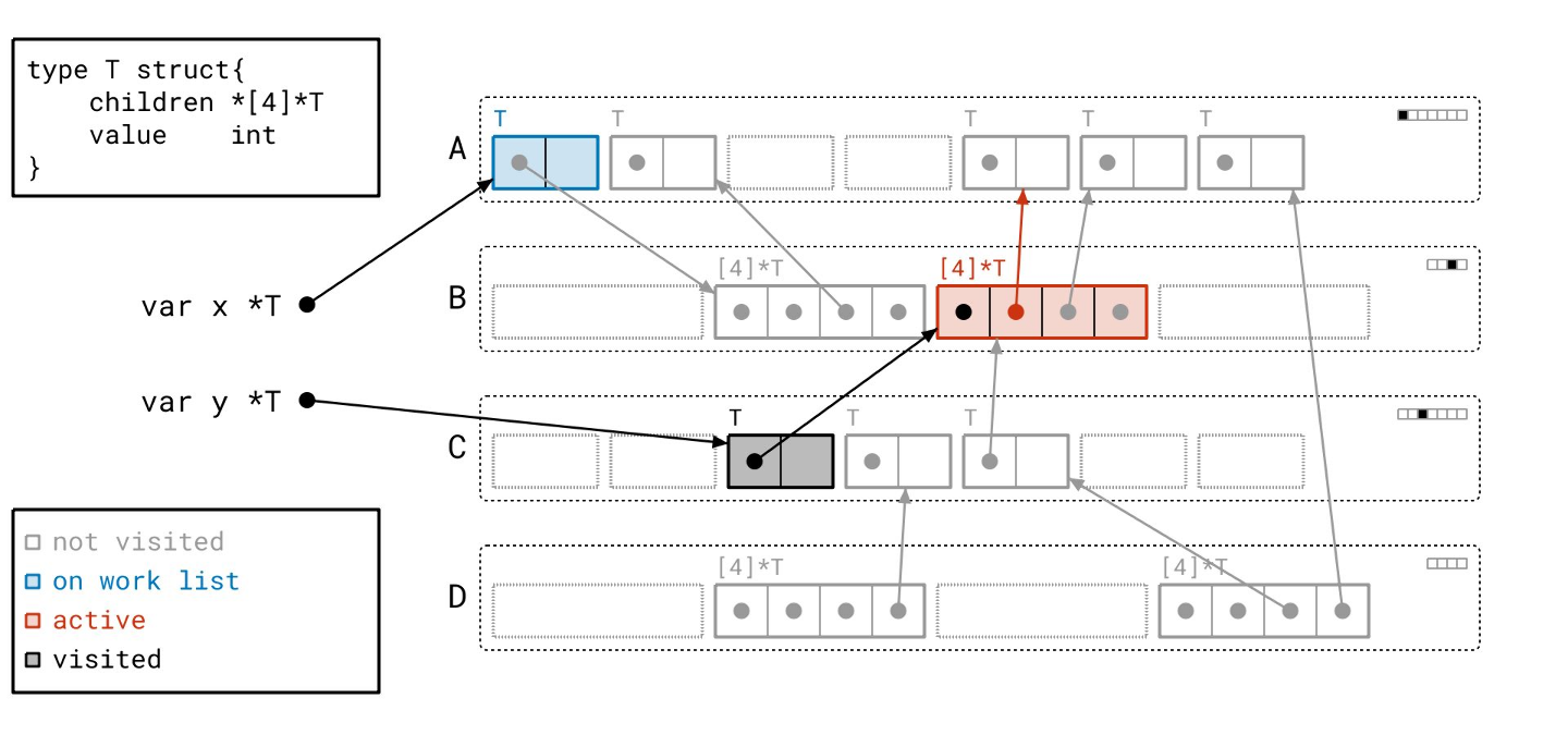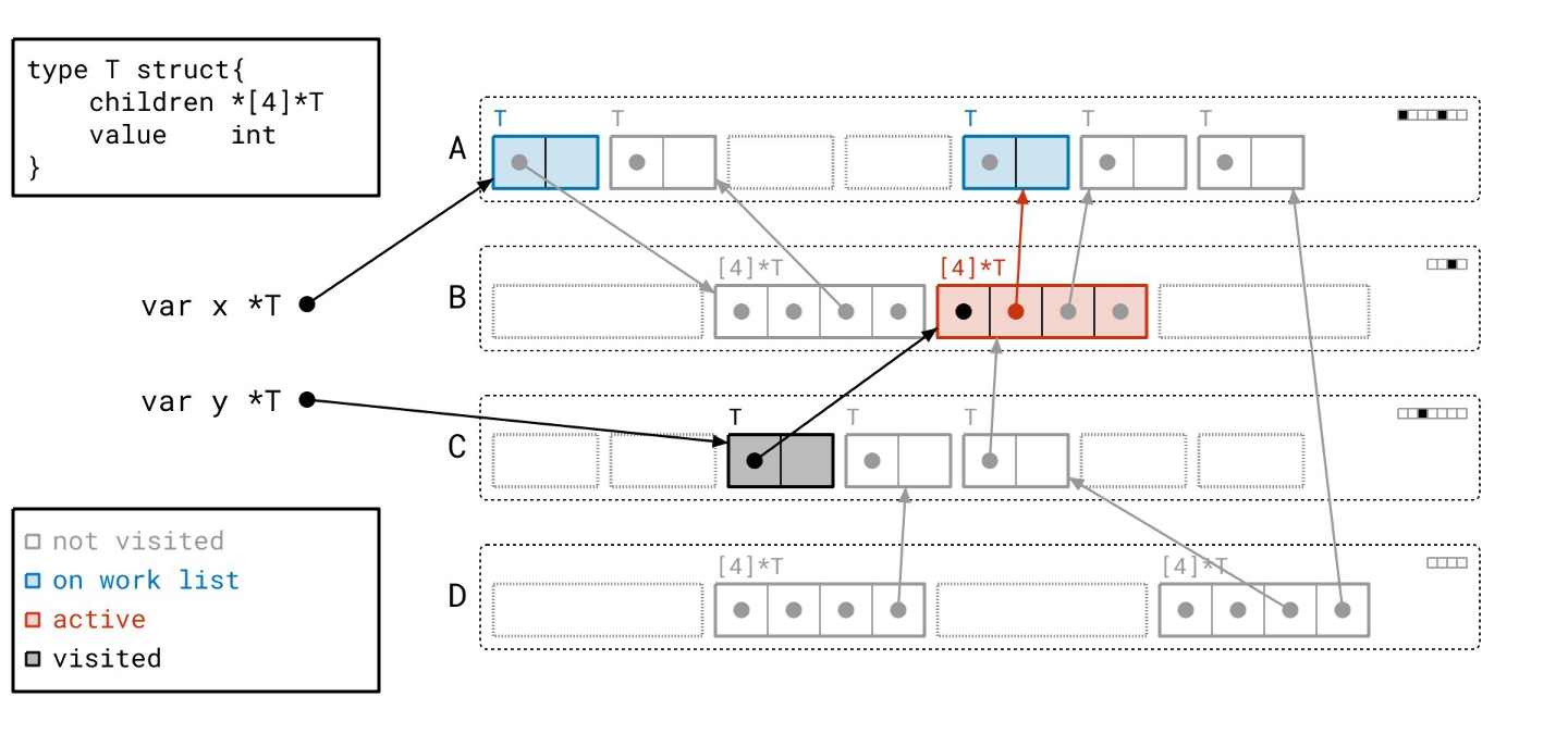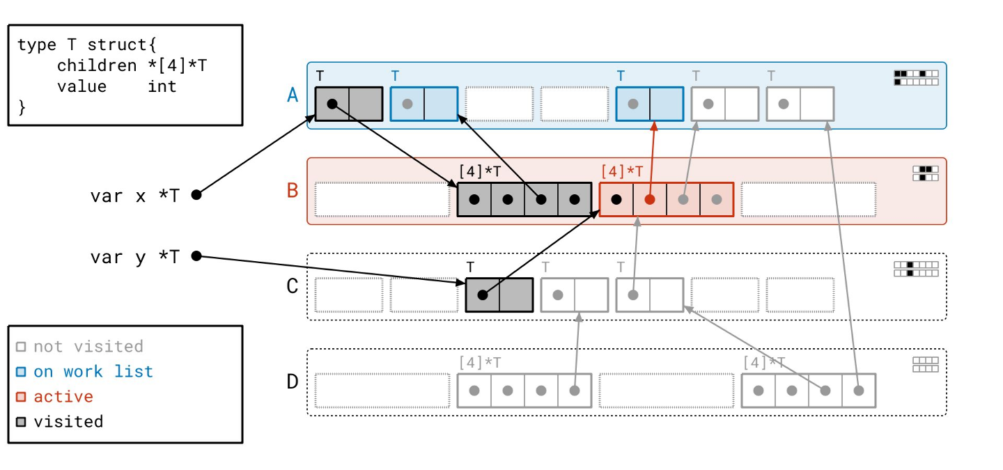 For example, this algorithm is, in practice, executed concurrently with your regular Go code. Walking a graph that’s mutating underneath you brings challenges. We also parallelize this algorithm, which is a detail that’ll come up again later.