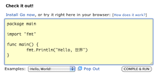 The Playground allows anyone with a web browser to write Go code that we immediately compile, link, and run on our servers. There are a few example programs to get you started (see the “Examples” drop-down). We hope that this will give curious programmers an opportunity to try the language before installing it, and experienced Go users a convenient place in which to experiment. Beyond the front page, this functionality has the potential to make our reference and tutorial materials more engaging. We hope to extend its use in the near future.