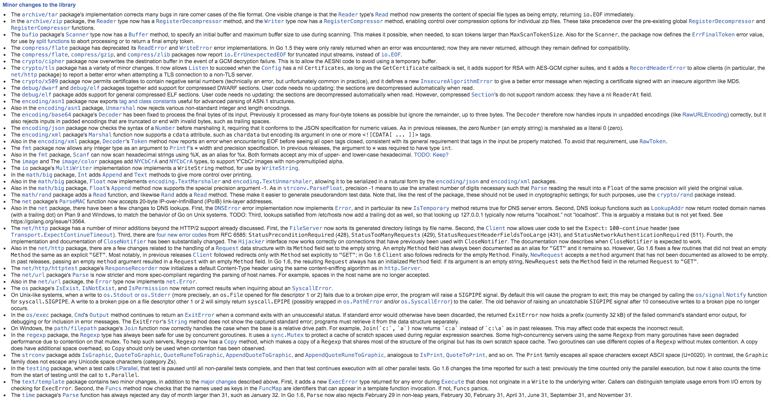 3Changes since Go 1.5: